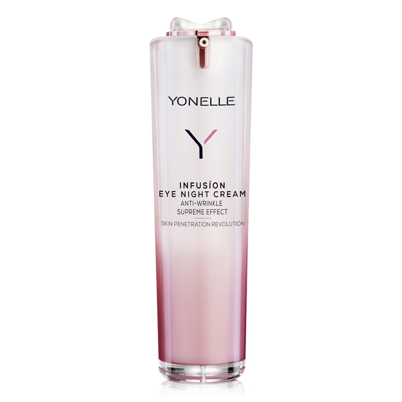 Infusion Eye Night Cream - Krem pod oczy i na powieki na noc. Krem do pielęgnacji delikatnych okolic wokół oczu, przeznaczony dla skóry normalnej i suchej. Działanie przeciwzmarszczkowe i regeneracyjne zawdzięcza obecności retinolu, kwasu hialuronowego i peptydów. W czasie snu składniki aktywne przenikają głęboko w skórę, stymulując komórki do odnowy. Zwiększa się wówczas synteza kolagenu i elastyny. Skóra staje się jędrna, sprężysta i gładka. Obecność w recepturze NanodyskówTM, podwyższa wnikanie substancji aktywnych w głąb skóry nawet o 340%.