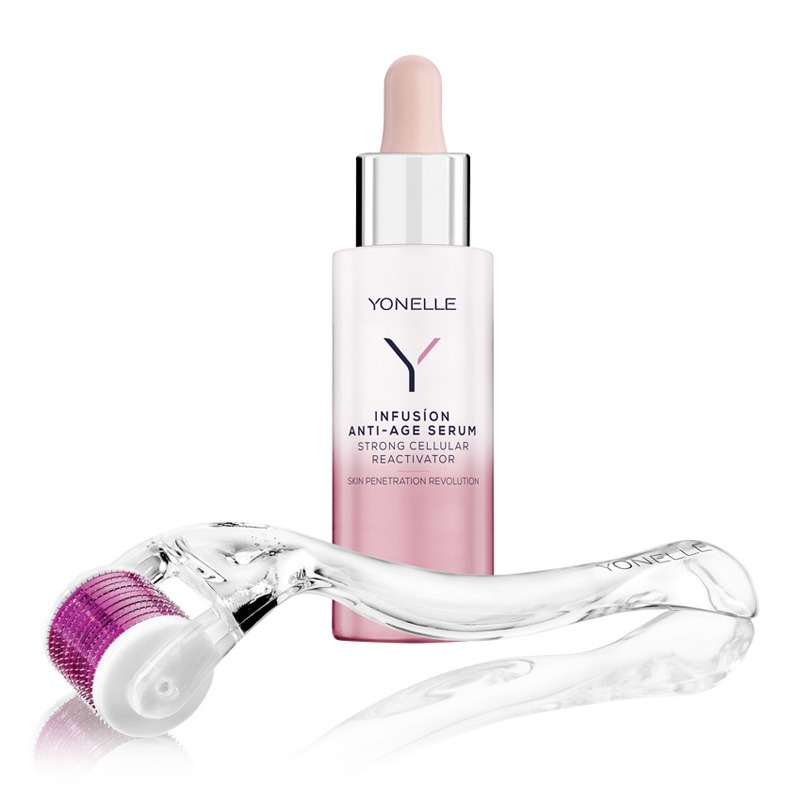Infusion Micro-Needling Treatment Mezoroller + Serum - Zabieg mikronakłuwania infuzyjnego. Zabieg polegający na nakłuwaniu skóry,który tworzy mikrokanaliki zwiększające wchłanianie retinolu. Dzięki temu następuję rekonstrukcja i odnowa skóry. Cera staje się napięta, wygładzona i dotleniona, co wpływa na jej młodszy wygląd i blask. Dzięki mikronakłuciom substancje aktywne wnikają w głąb skóry 1000 razy lepiej niż bez użycia Mezorollera. Wchłanianie substancji podwyższa obecność NanodyskówTM - systemu transportującego. Efekty zabiegu są spektakularne - skóra staje się jędrna, sprężysta, a koloryt cery jest ujednolicony.
