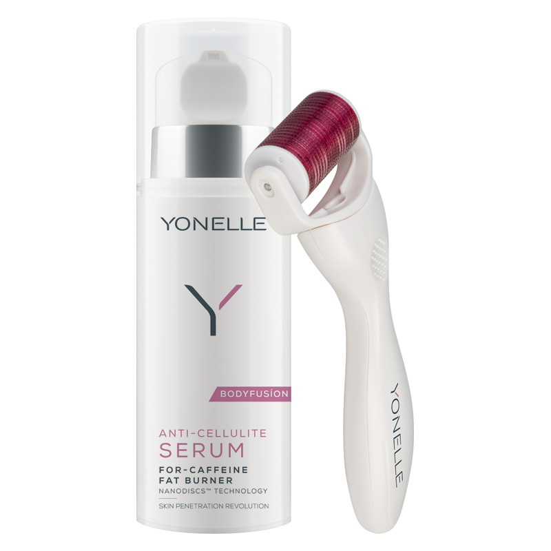 Mezoroller + Anti-Cellulite Serum - Mezoroller + serum antycellulitowe. Zabieg antycellulitowy wykorzystujący mezoterapię mikroigłową w celu zwiększenia wchłaniania substancji aktywnych w głąb skóry. "Skórka pomarańczowa" zostaje zredukowana dzięki obecności FOR-KOFEINOWEGO SPALACZA TŁUSZCZU - znikają nierówności powierzchniowe oraz dochodzi do zmniejszenia obwodu ud, pośladków, brzucha i ramion. Serum wykazuje działanie lipolityczne, stymuluje mikrokrążenie oraz pobudza metabolizm.