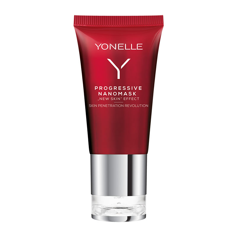 Progressive Nanomask - Progresywna nanomaska, efekt "nowej skóry". Krem o silnych właściwościach regenerujących i wygładzających. Efekt nowej skóry, zawdzięcza 4% zawartości kwasów (w tym kwas fitowy). Od razu po użyciu cera staje się rozjaśniona, elastyczna, ujędrniona i odświeżona. Pory zmniejszają się, koloryt cery wyrównuje. Krem zawiera NanodyskiTM, które zwiększają wchłanianie substancji aktywnych. Obecność ekstraktu ze SNOW ALGAE, przedłuża żywotność komórek skóry. Cera na dłużej pozostaje młoda i świeża