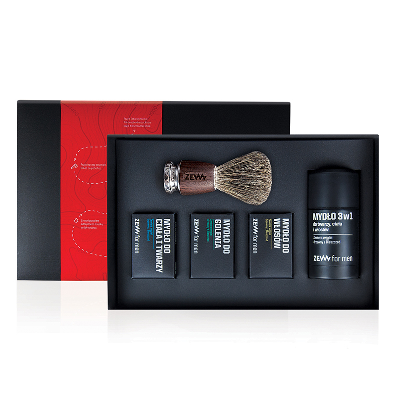 Zestaw Golibrody - ZESTAW Mydło + Mydło + Mydło + Mydło 3 w 1 + Pędzel. Niezbędnik dla Panów lubiących schludny i krótki zarost. Najwyższej jakości produkty, które pozwolą szybko usunąć zarost oraz zadbają o pielęgnacje skóry i włosów. Naturalne mydła ZEW for Men ze względu na zawartość detoksykującego węgla drzewnego z Bieszczad dokładnie oczyszcza i działa antybakteryjnie. W skład zestawu wchodzi mydło do twarzy i ciała, mydło do włosów, mydło do golenia oraz mydło 3 w 1. Mydło do golenia to wspaniały produkt, który nie tylko ułatwi golenie, ale również dba o zarost. Dostępny w zestawie wysokiej jakości pędzel MÜHLE świetnie sprawdza się w połączeniu z mydłem do golenia. Wysokiej jakości włosie borsuka ułatwia tworzenie gęstej piany i pozwala na szybkie i precyzyjne golenie